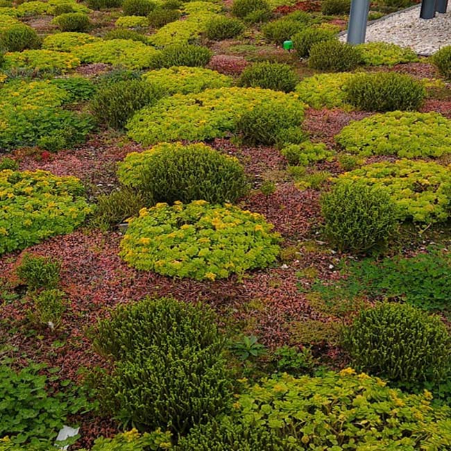 Se utilizan especies suculentas dado que tienen una gran adaptación a vivir en ambientes con baja disponibilidad hídrica y escasa fertilidad edáfica.